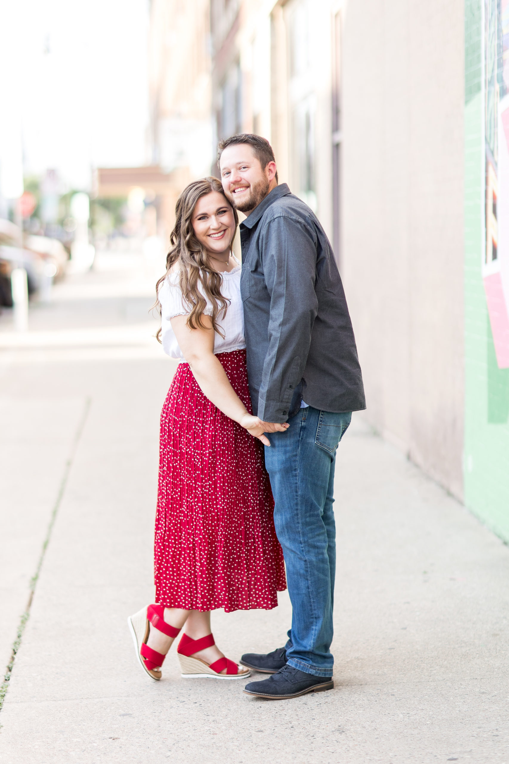 It was love at first sight when I saw Chandler walking toward me in this poppy red skirt and shoes! This was also my first time shooting near the new postcard mural in Downtown Fargo and look how fun it turned out!