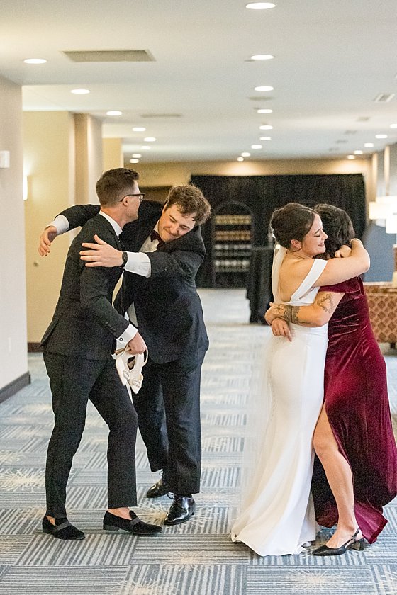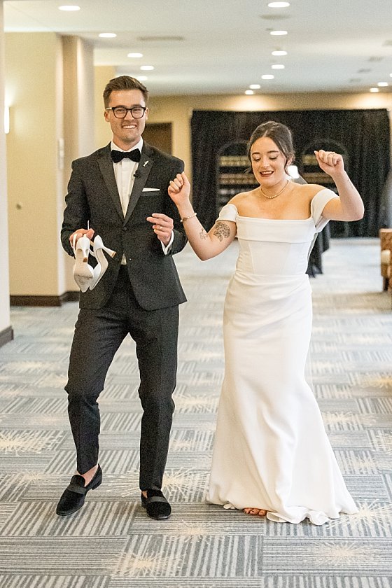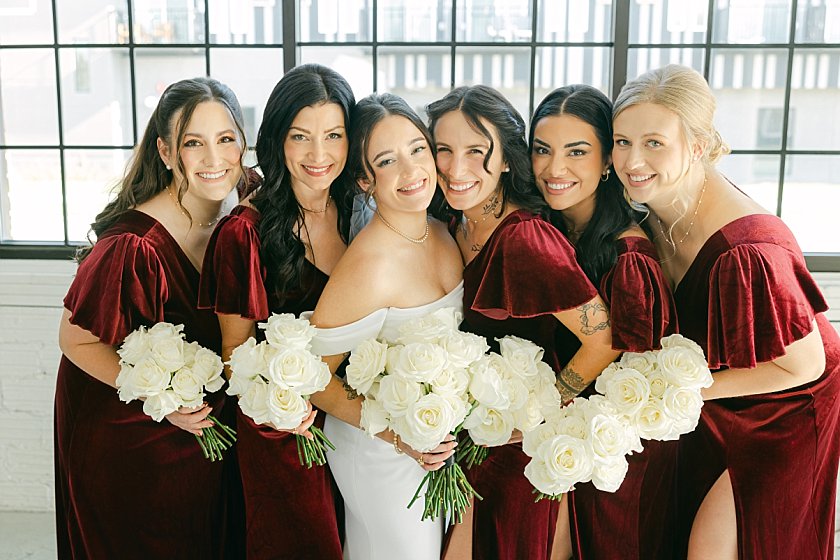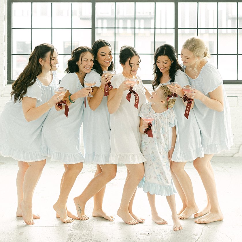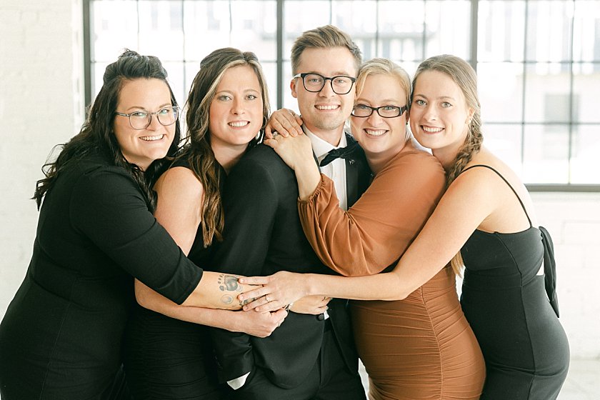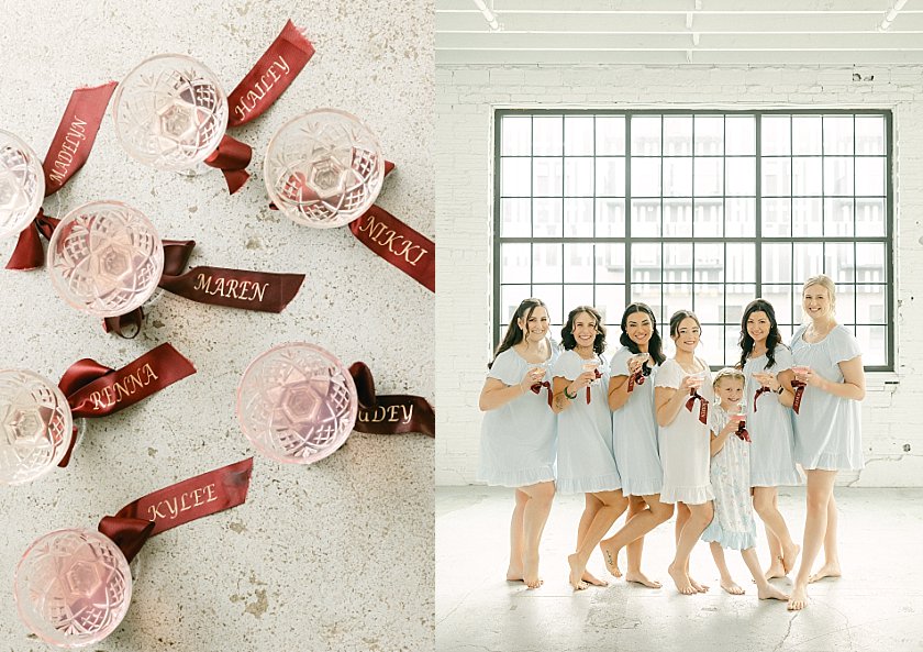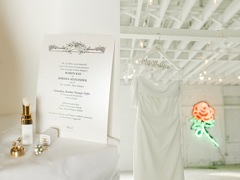 Maren & Jordan were married on Saturday at the Hilton Garden Inn in Fargo, ND! The morning began at Ivy & Rose warehouse in downtown Fargo, where the sunlight poured in and flooded the space with a pretty glow. Maren’s dark hair was swept into a French twist while the girls, in their light blue nightgowns, sipped champagne and laughed together. A theme of roses and pearls made this day feel like a classic love story. As a photographer, I was endlessly inspired by all the gorgeous details, but even more so by the sweet, sassy, and sentimental love that M + J share. Here are a few of my favorites from their beautiful day!