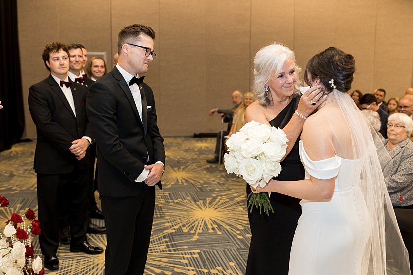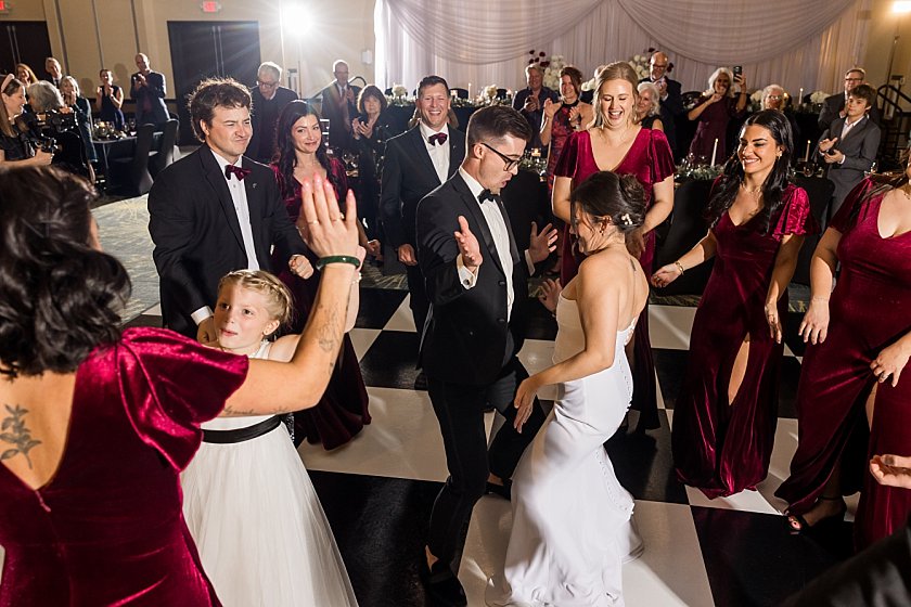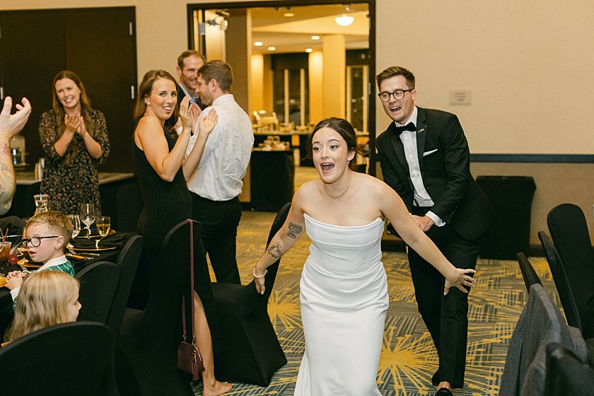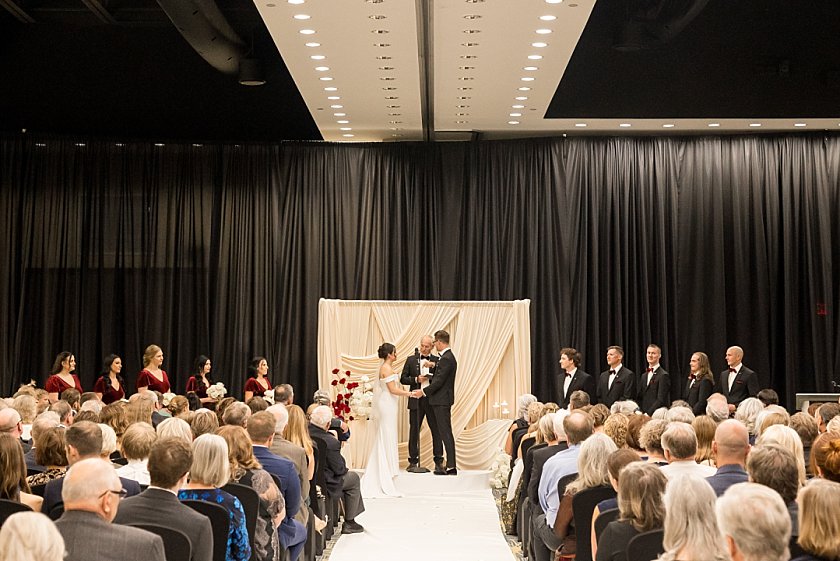 Maren & Jordan were married on Saturday at the Hilton Garden Inn in Fargo, ND! The morning began at Ivy & Rose warehouse in downtown Fargo, where the sunlight poured in and flooded the space with a pretty glow. Maren’s dark hair was swept into a French twist while the girls, in their light blue nightgowns, sipped champagne and laughed together. A theme of roses and pearls made this day feel like a classic love story. As a photographer, I was endlessly inspired by all the gorgeous details, but even more so by the sweet, sassy, and sentimental love that M + J share. Here are a few of my favorites from their beautiful day!