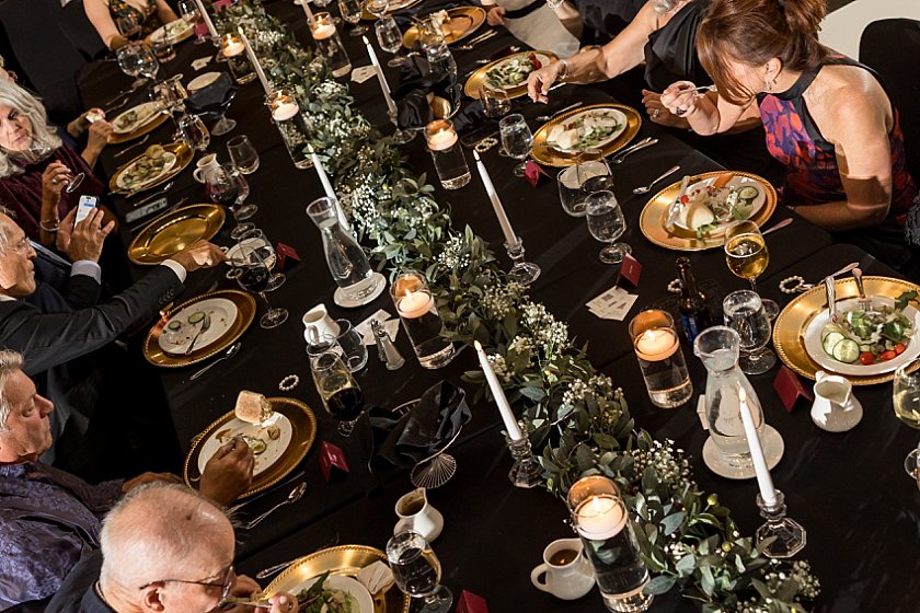 While the guests enjoyed cocktails and appetizers, the room was flipped into a stunning reception!