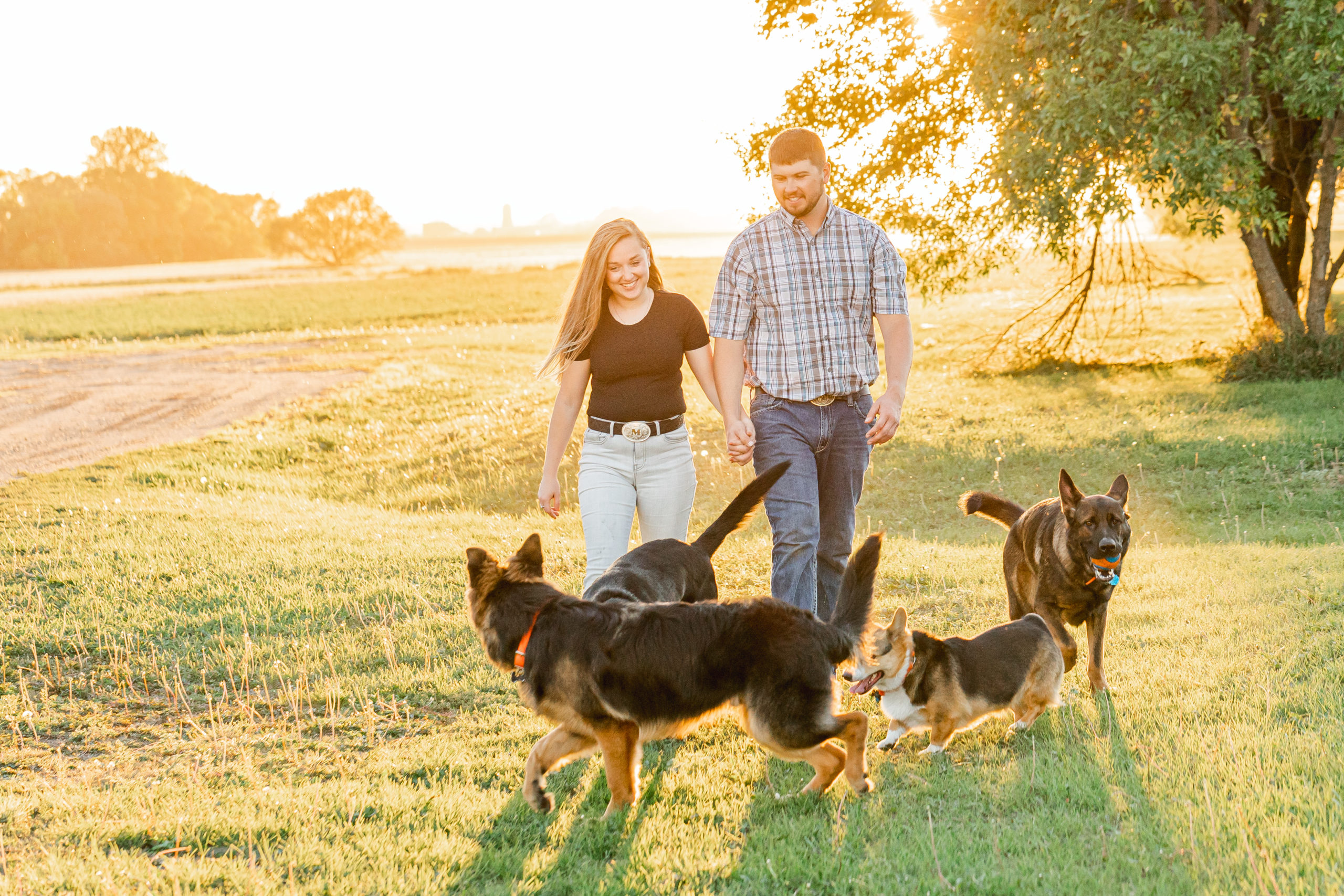 Today I’m sharing images from Matt & Maggie’s engagement session! Their farm in Enderlin, North Dakota is where they are both at home and thrive off of working together; this is also where we took their engagement photos and I always love when couples choose locations that mean something personal to them. It was wonderful to see the environment where these two’s true partnership is clearly manifested through their working together each day. Matt and Maggie will make it official at Matt’s childhood church–Trinity Lutheran–and at the beautiful Jasper Hotel in downtown Fargo. Also, I got to meet their four dogs who we included in the shoot– scroll down to see all their smiling faces together!