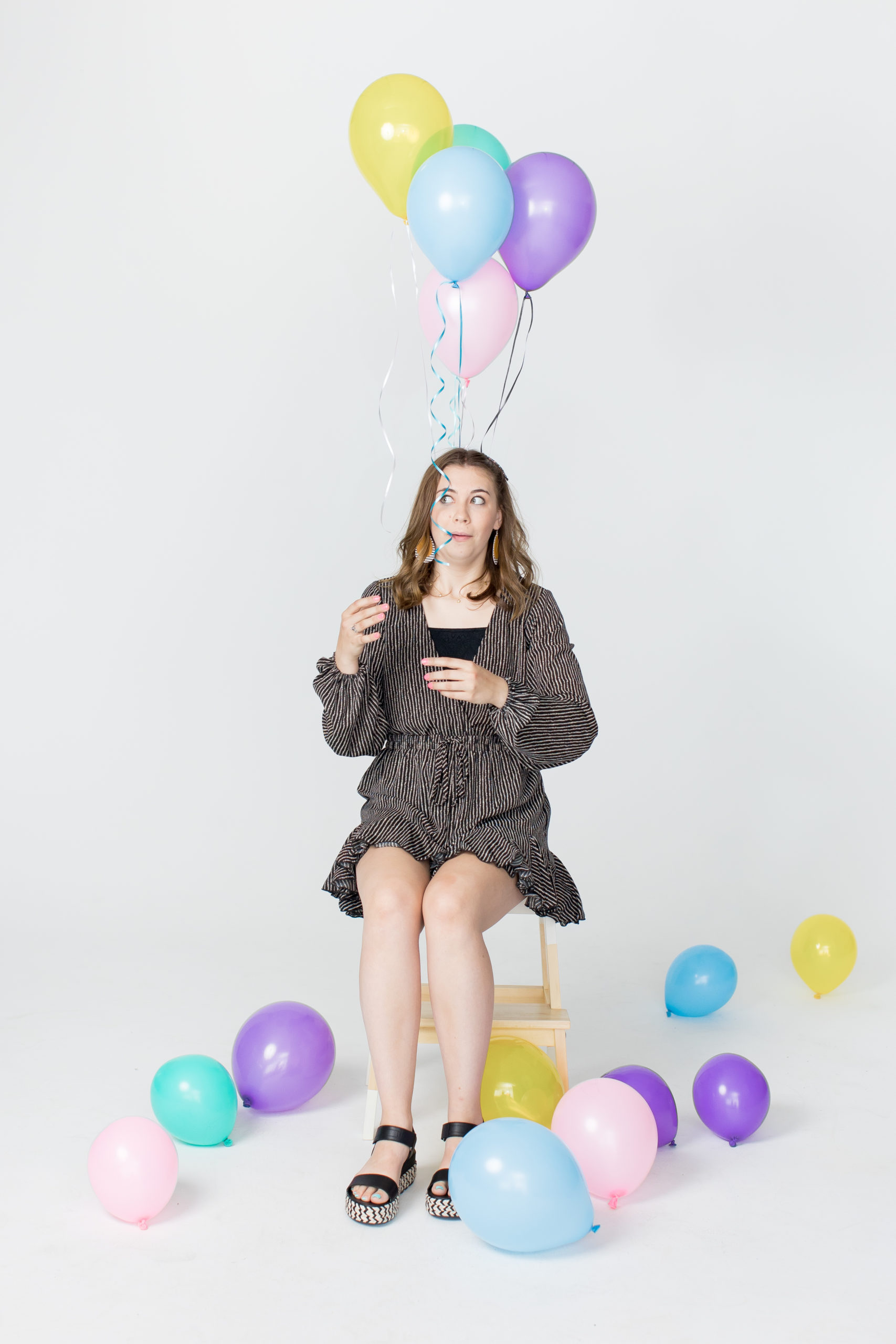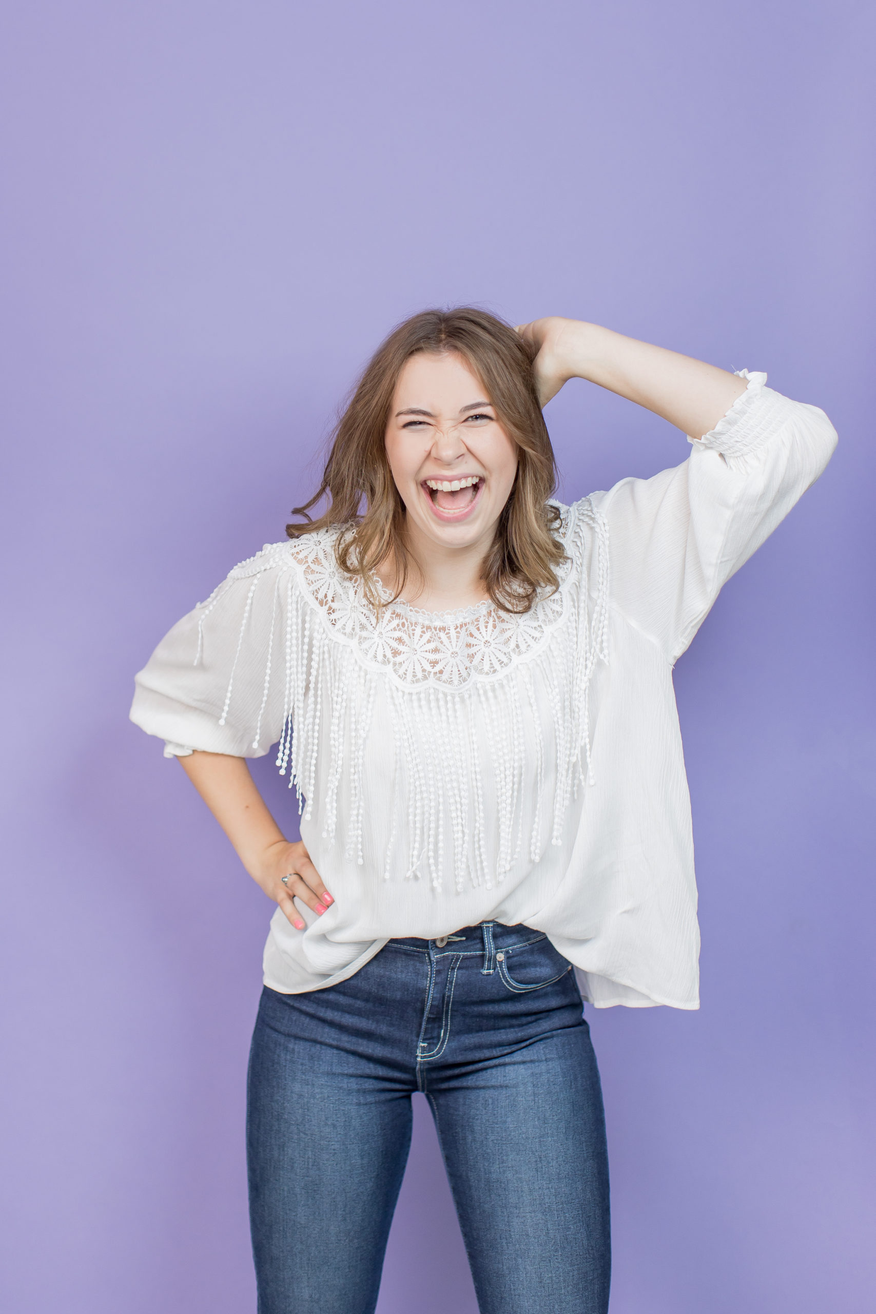 It was raining cats and dogs the morning of Ellah’s senior photo session! We started in my studio and then had a rainy adventure in downtown Fargo. This girl had so much spunk and I absolutely loved photographing her! She is a senior at Maple Valley and her favorite color is purple, which we incorporated into a few of her studio images. My favorite shots are the splish-splashing photos at the end of our session. {Senior Photographers Fargo ND}