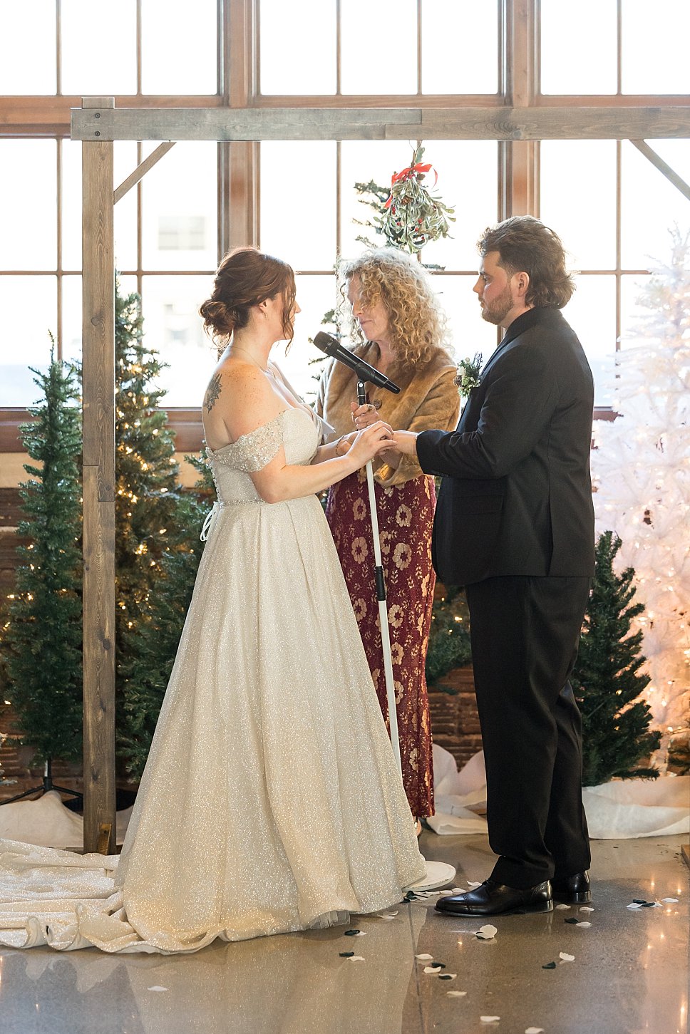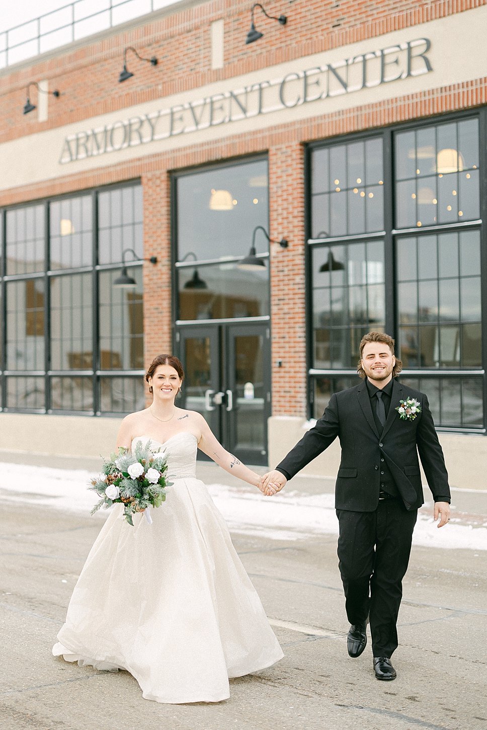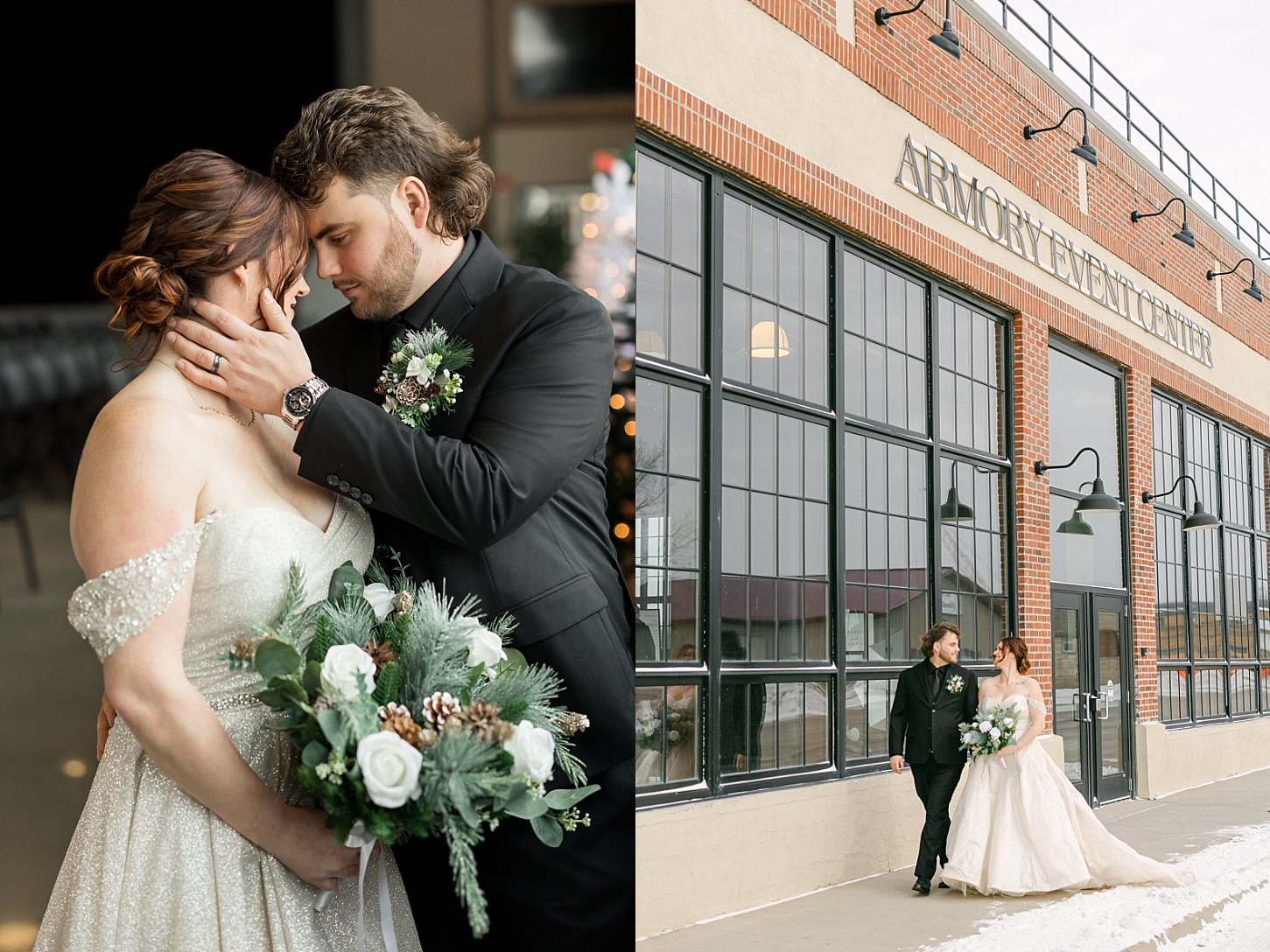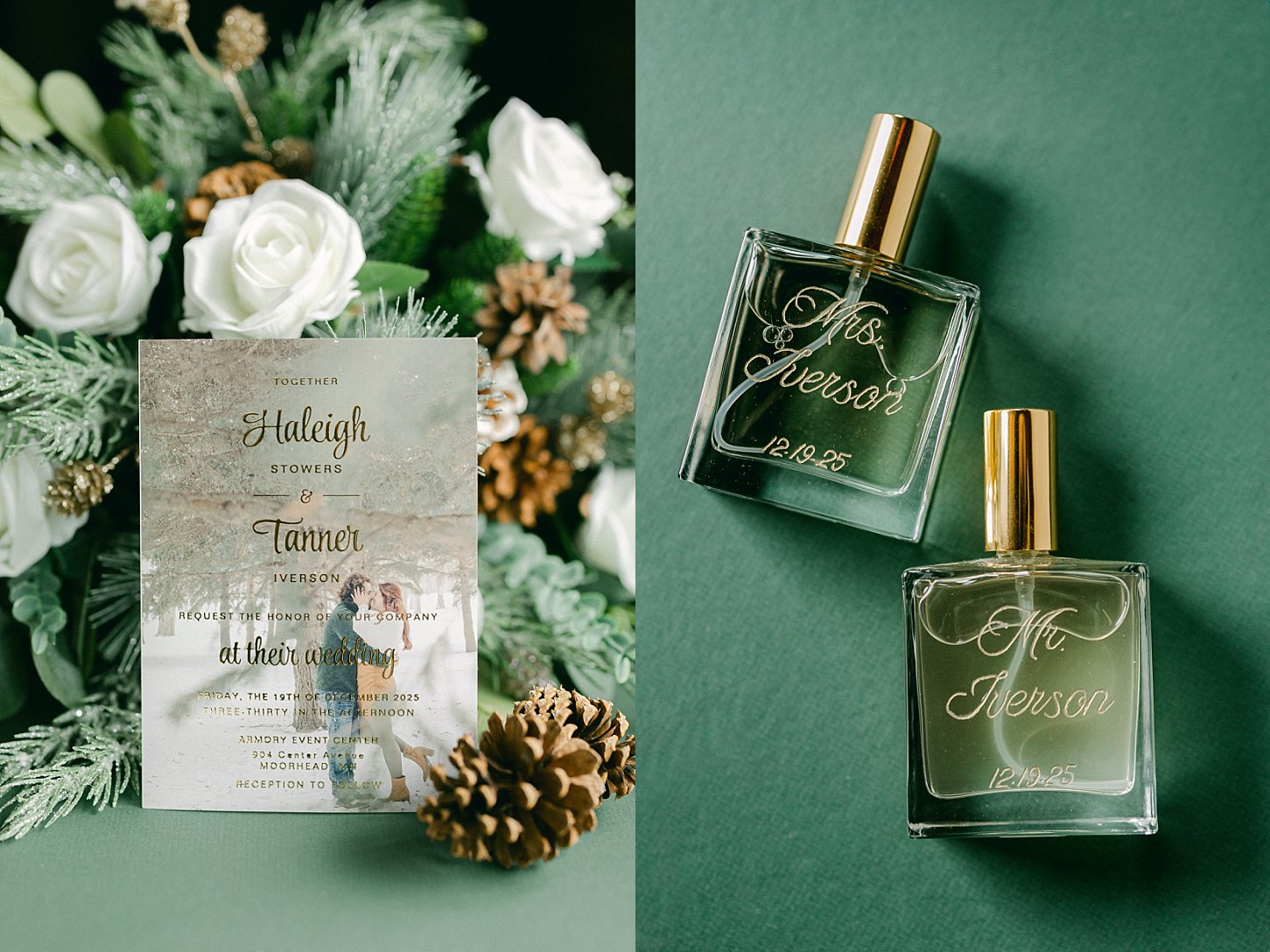Hi friends!!! Today I’m sharing my final wedding blog post of 2025! Tanner & Haleigh were married at The Armory this past Friday. It was cozy and warm inside the venue despite the chilly outdoor temps, and this winter wonderland theme wedding was simply gorgeous from start to finish. There are lots of fun details for you to see, like the evergreen/pine cone bouquet, Tanner’s engraved pine forest ring, custom his+her perfumes and the hilarious flower men at the ceremony! I especially loved all the special moments between Haleigh and her grandpa. Grab a warm cup of hot chocolate and settle in for some beautiful photos!