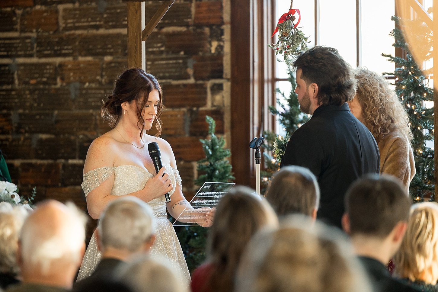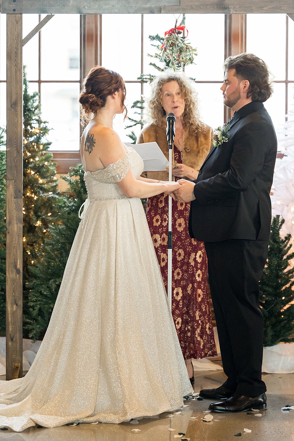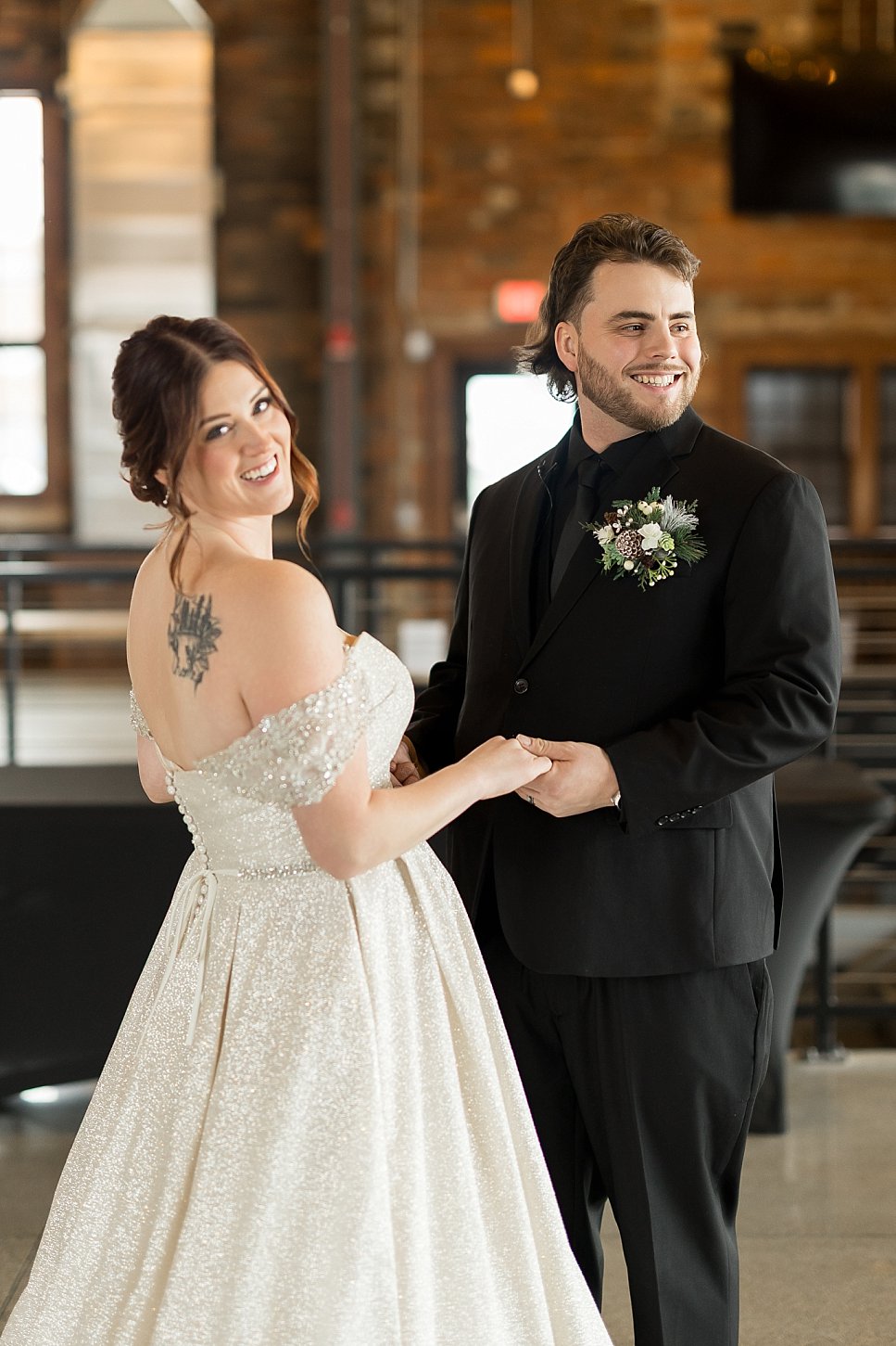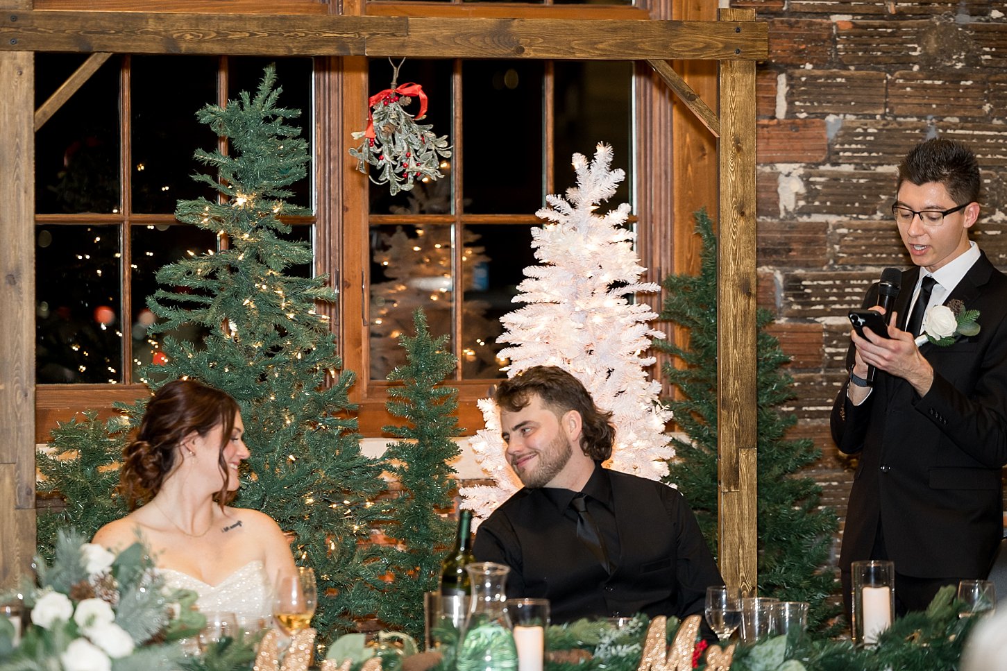 Hi friends!!! Today I’m sharing my final wedding blog post of 2025! Tanner & Haleigh were married at The Armory this past Friday. It was cozy and warm inside the venue despite the chilly outdoor temps, and this winter wonderland theme wedding was simply gorgeous from start to finish. There are lots of fun details for you to see, like the evergreen/pine cone bouquet, Tanner’s engraved pine forest ring, custom his+her perfumes and the hilarious flower men at the ceremony! I especially loved all the special moments between Haleigh and her grandpa. Grab a warm cup of hot chocolate and settle in for some beautiful photos!