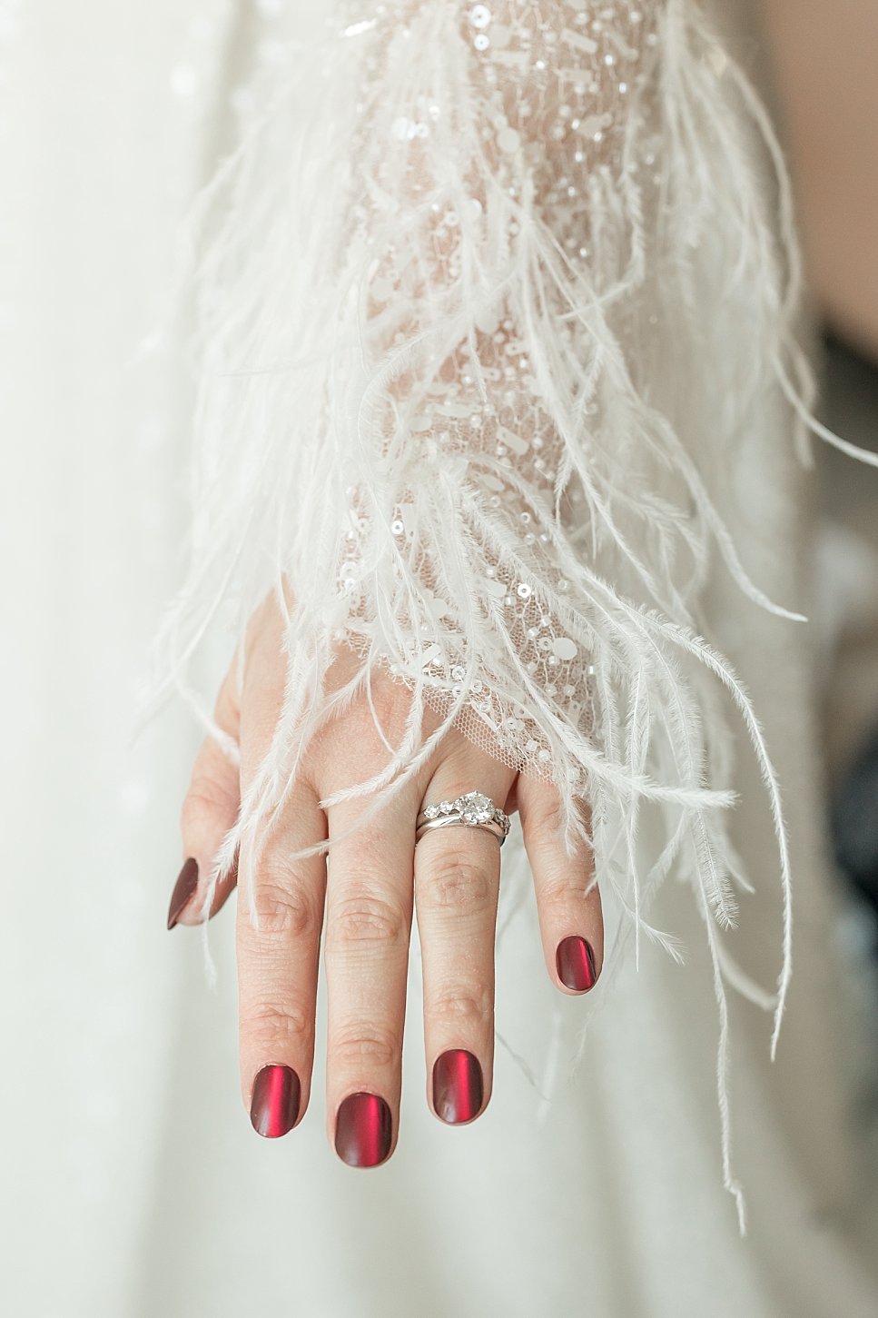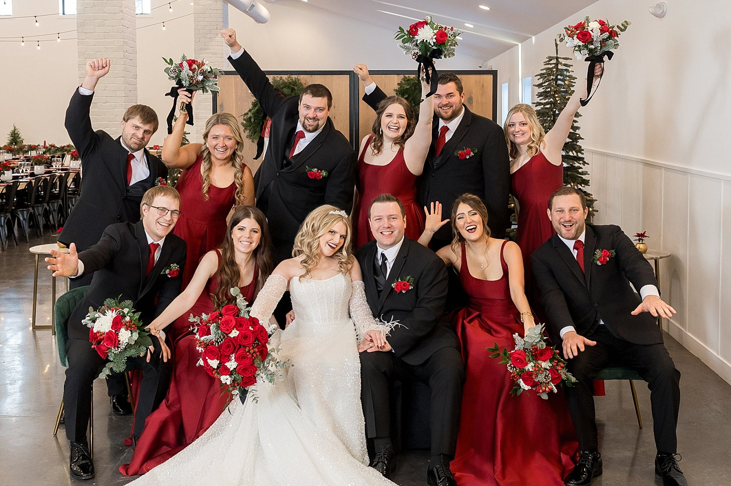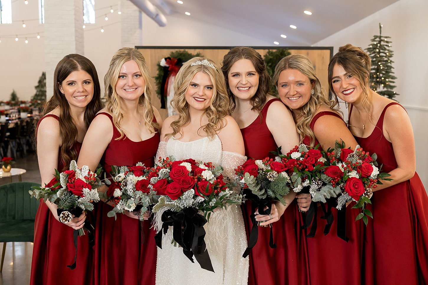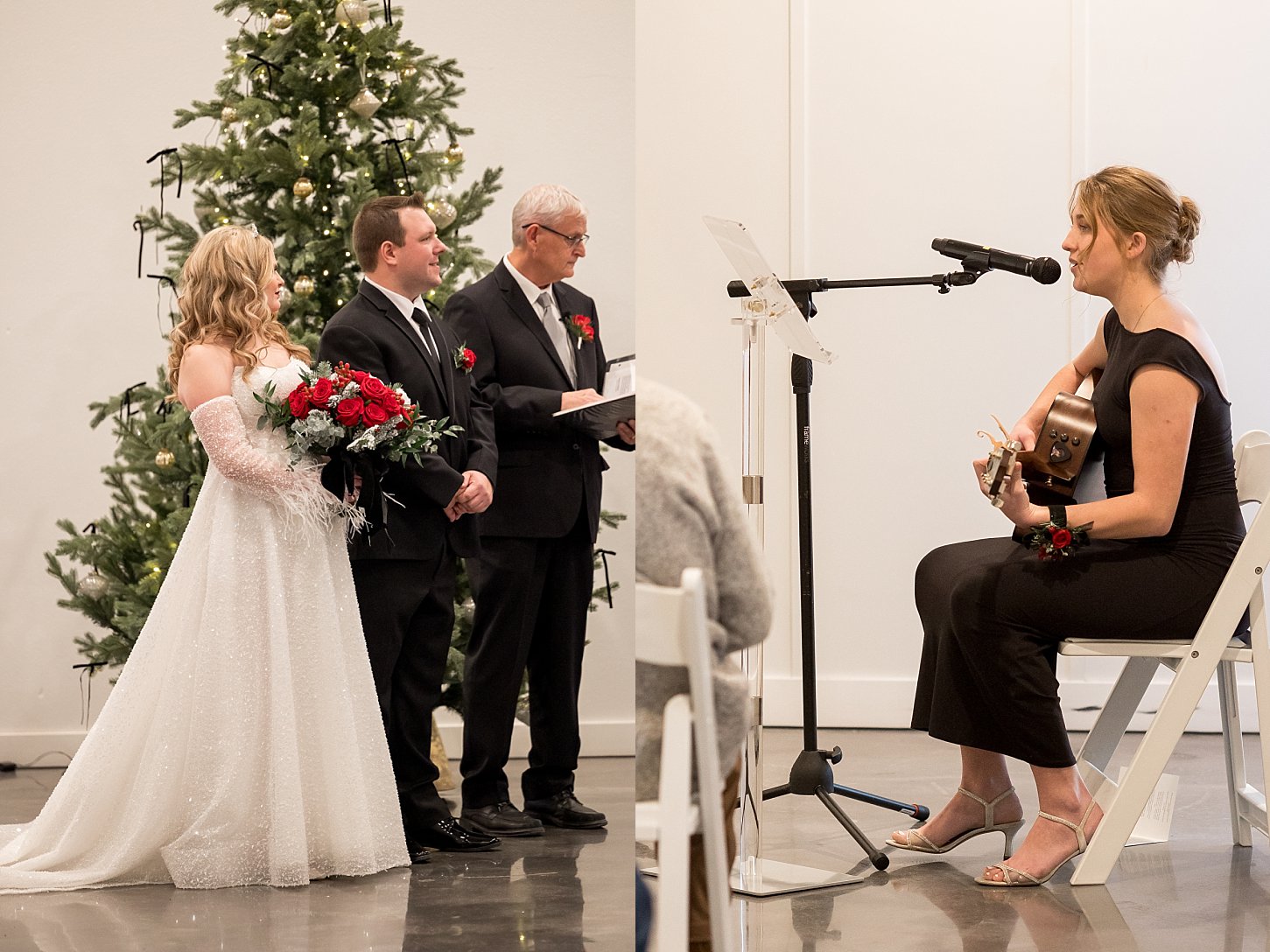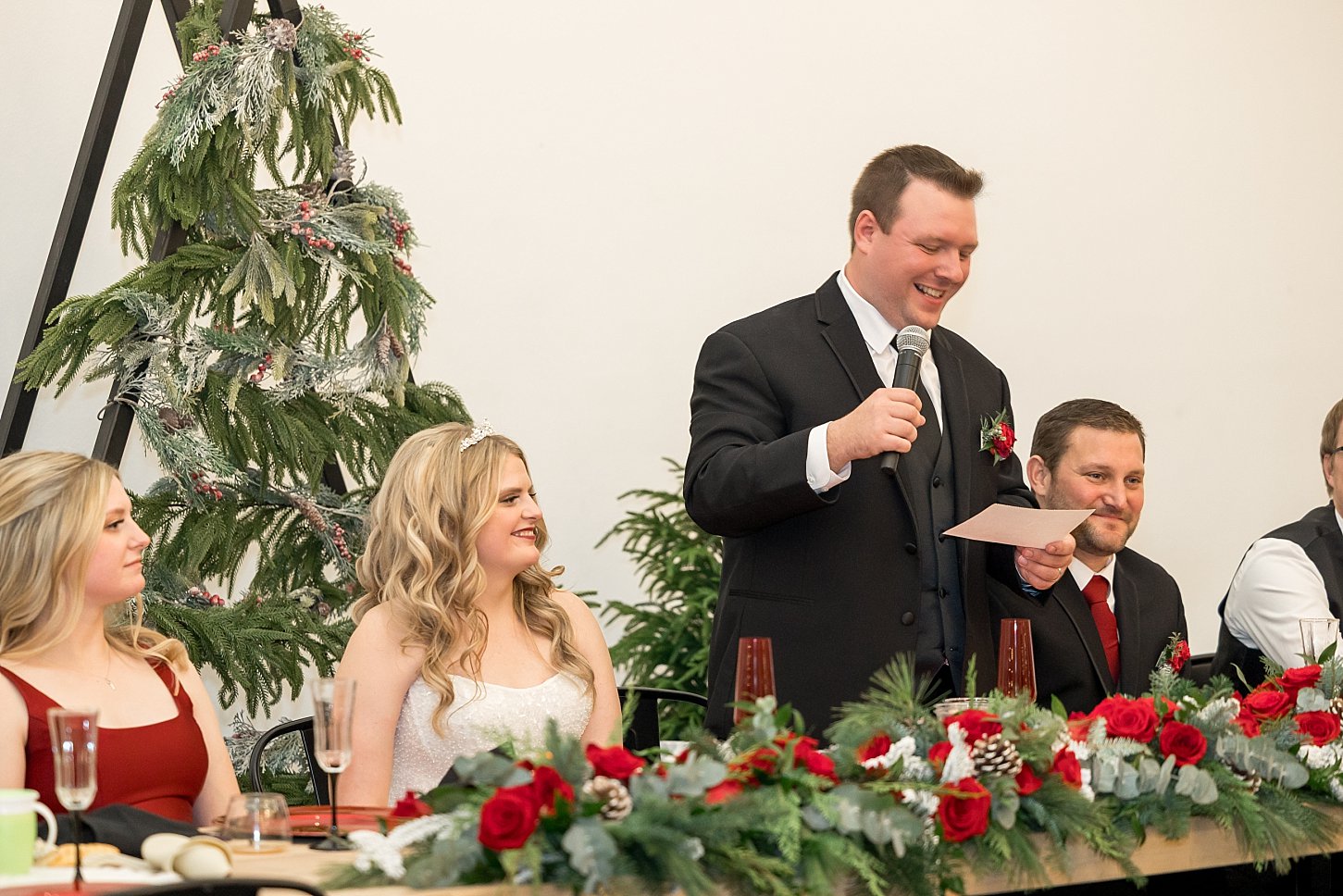 I have a Christmas wedding to share with you today! Alexa & David were married on Saturday at The Pines Black, and every part of the venue was decorated in festive tones of red, gold, emerald, and black velvet. Some of my favorite details were the Norwegian kransekake and a beautifully decorated Christmas tree at the front of their ceremony! After the sun had set, the couple shared a private first dance by the glowing lights of the tree. This was a wedding day full of holiday magic!