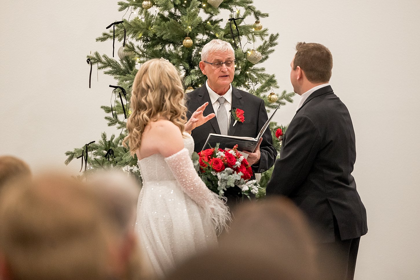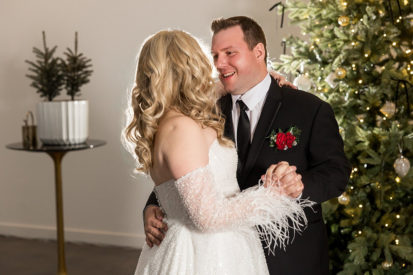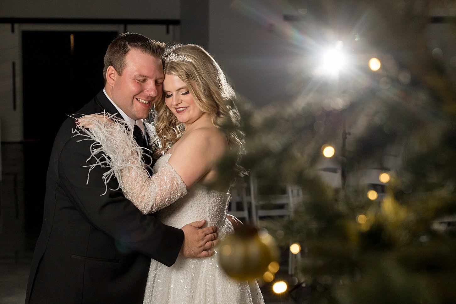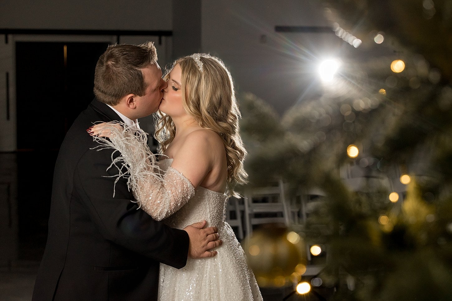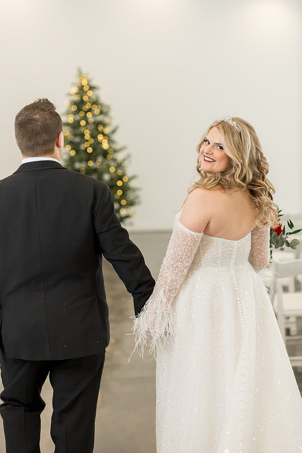 I have a Christmas wedding to share with you today! Alexa & David were married on Saturday at The Pines Black, and every part of the venue was decorated in festive tones of red, gold, emerald, and black velvet. Some of my favorite details were the Norwegian kransekake and a beautifully decorated Christmas tree at the front of their ceremony! After the sun had set, the couple shared a private first dance by the glowing lights of the tree. This was a wedding day full of holiday magic!