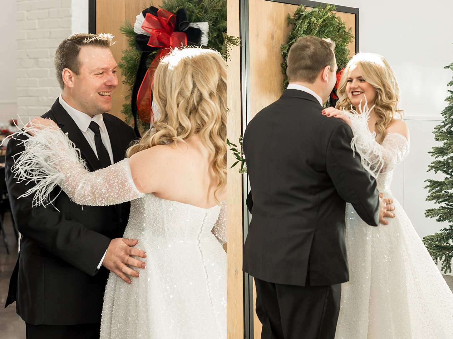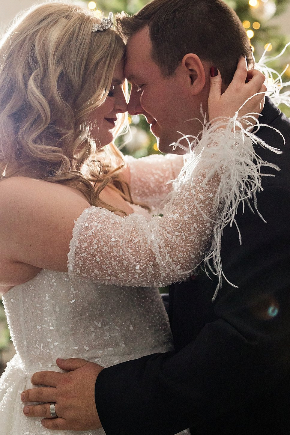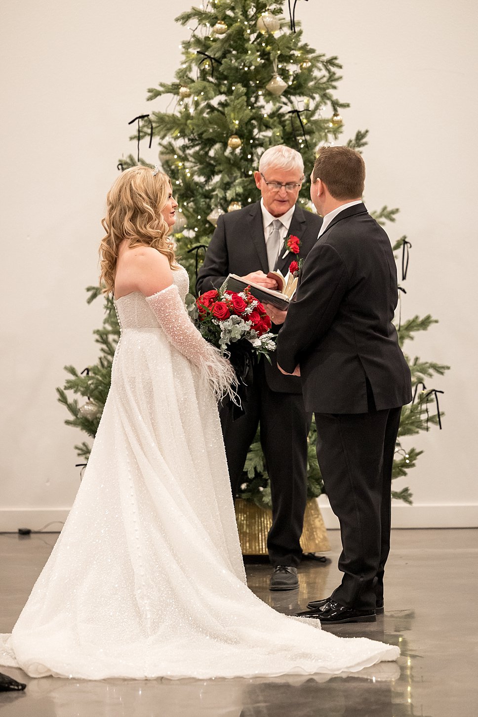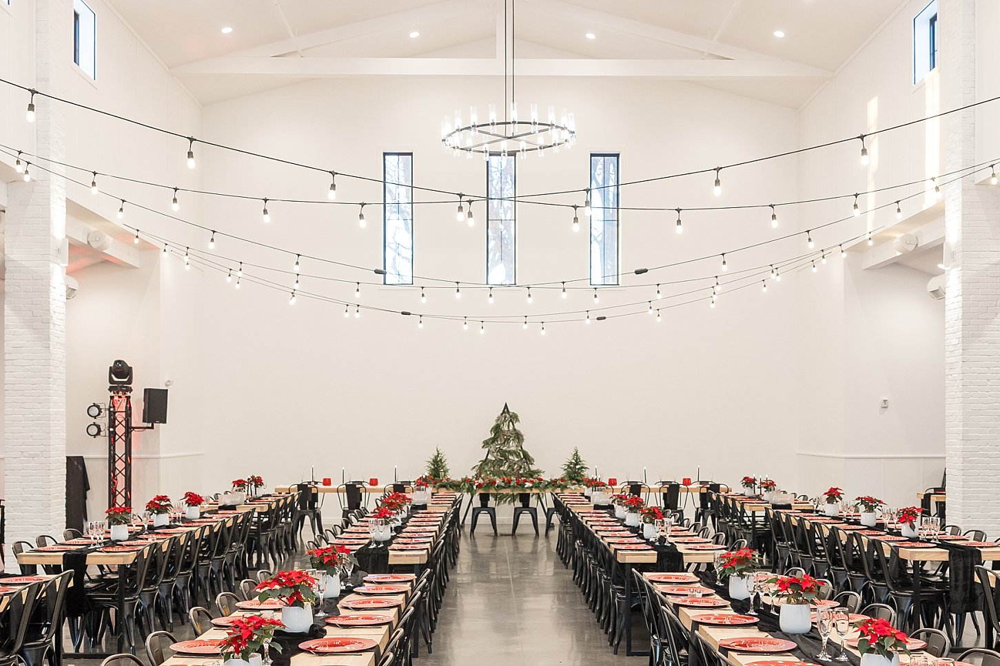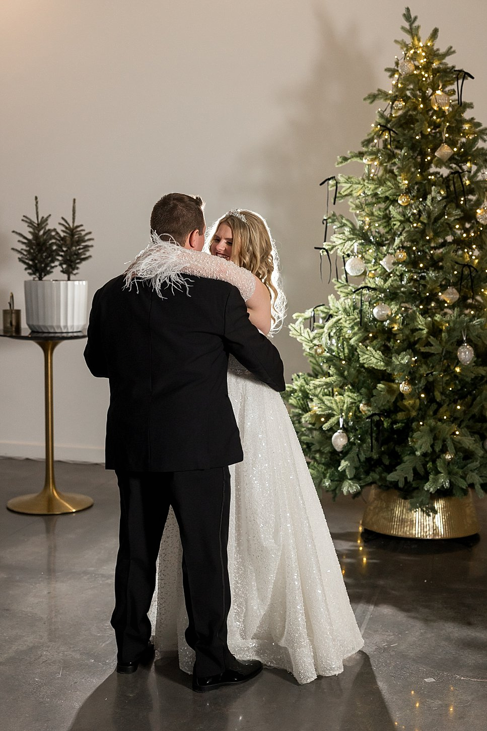 I have a Christmas wedding to share with you today! Alexa & David were married on Saturday at The Pines Black, and every part of the venue was decorated in festive tones of red, gold, emerald, and black velvet. Some of my favorite details were the Norwegian kransekake and a beautifully decorated Christmas tree at the front of their ceremony! After the sun had set, the couple shared a private first dance by the glowing lights of the tree. This was a wedding day full of holiday magic!