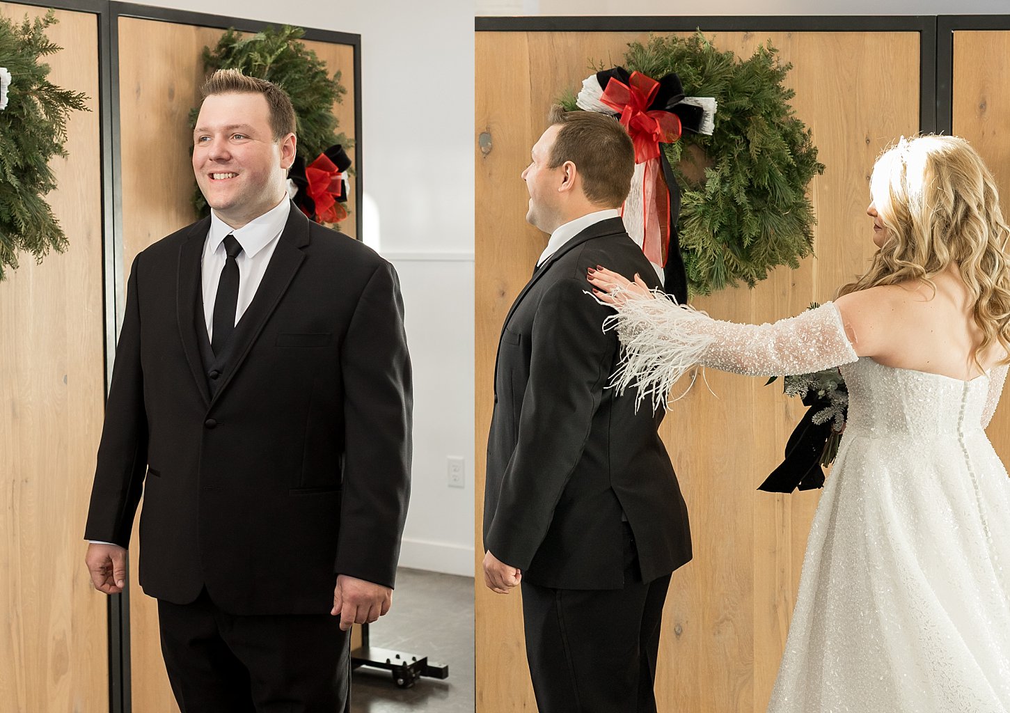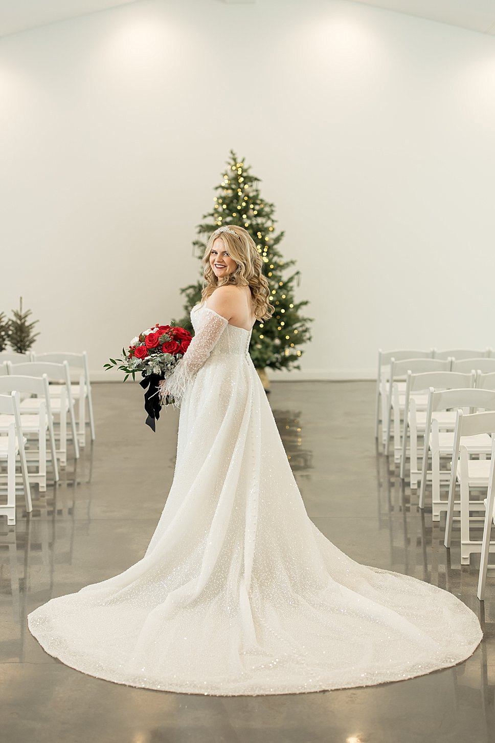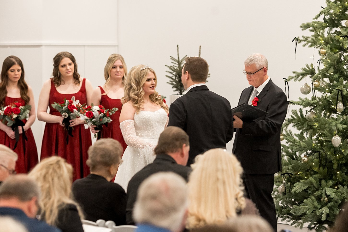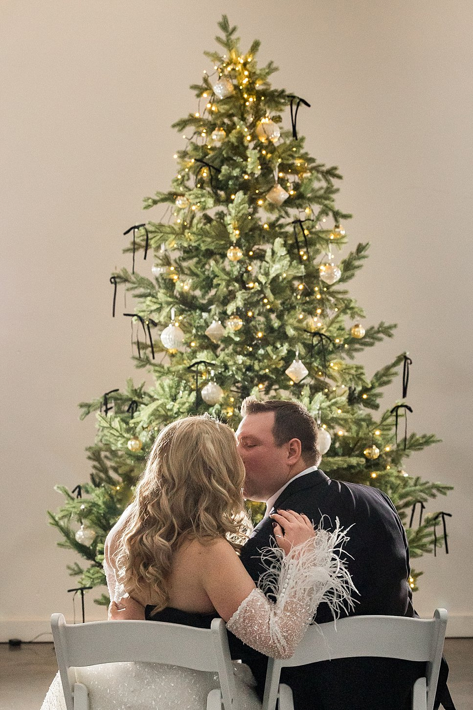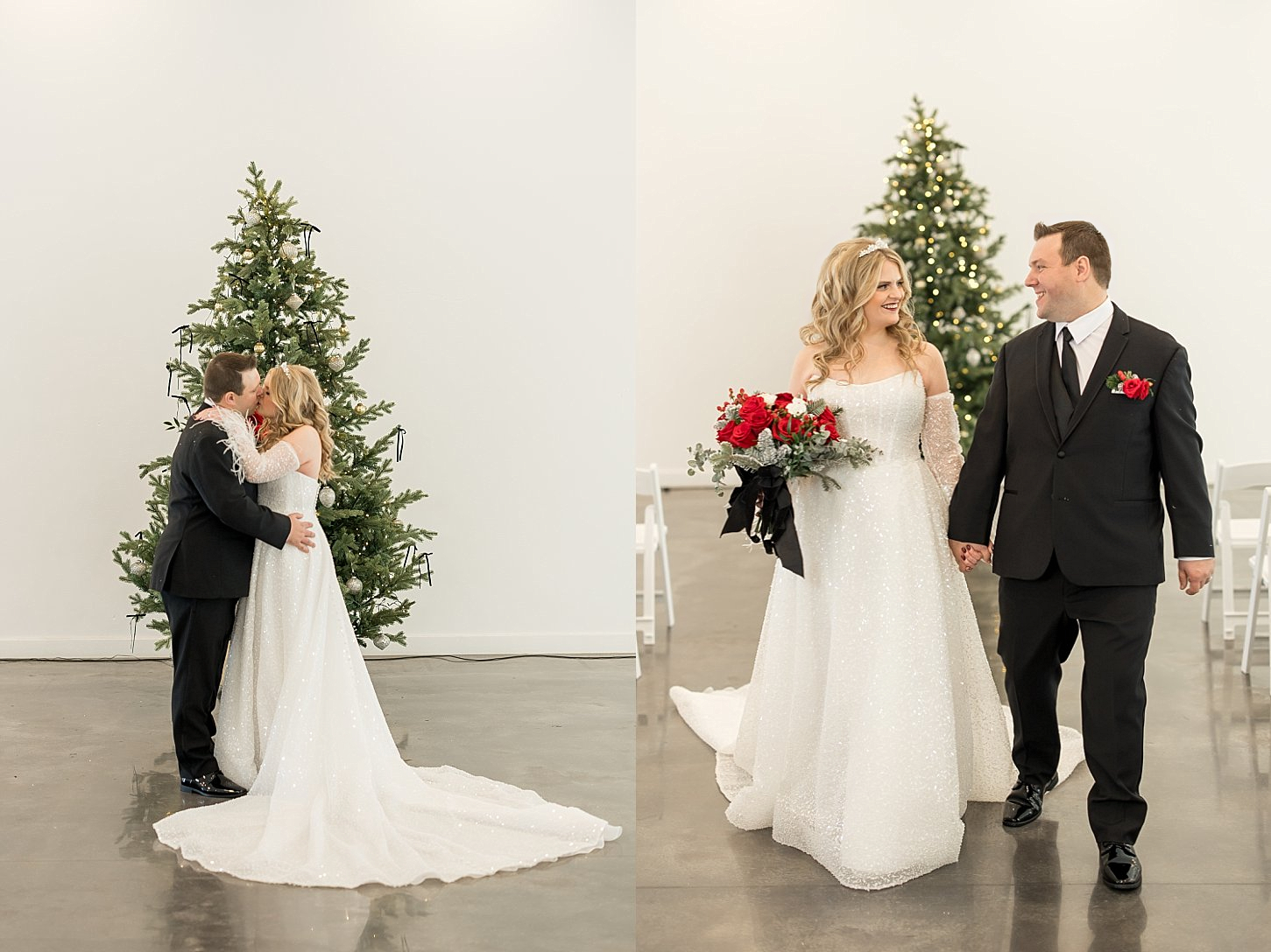 I have a Christmas wedding to share with you today! Alexa & David were married on Saturday at The Pines Black, and every part of the venue was decorated in festive tones of red, gold, emerald, and black velvet. Some of my favorite details were the Norwegian kransekake and a beautifully decorated Christmas tree at the front of their ceremony! After the sun had set, the couple shared a private first dance by the glowing lights of the tree. This was a wedding day full of holiday magic!