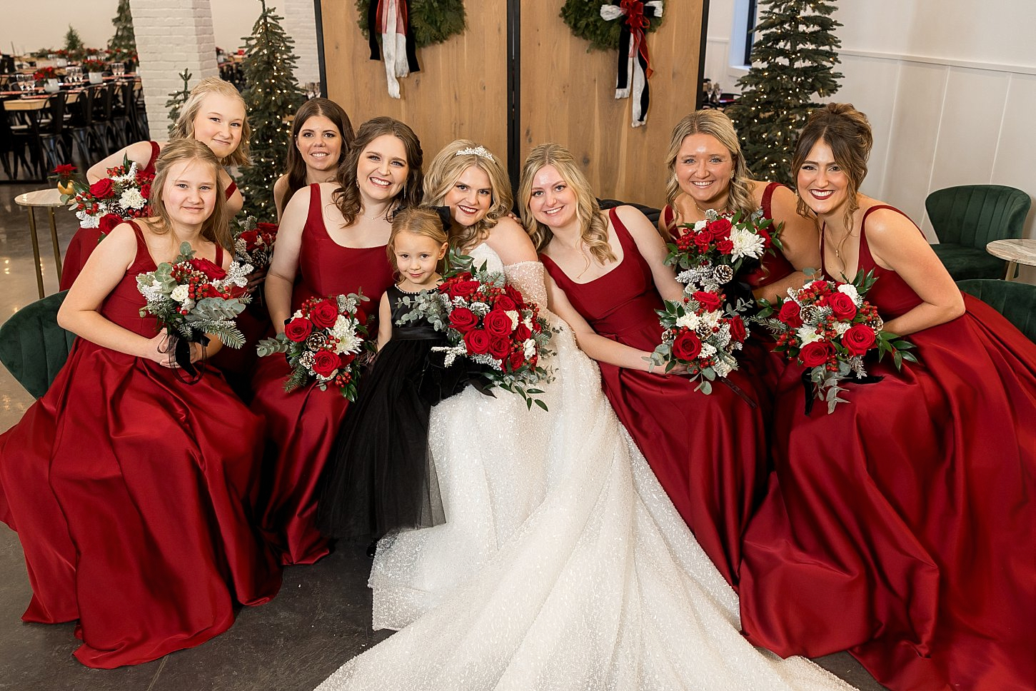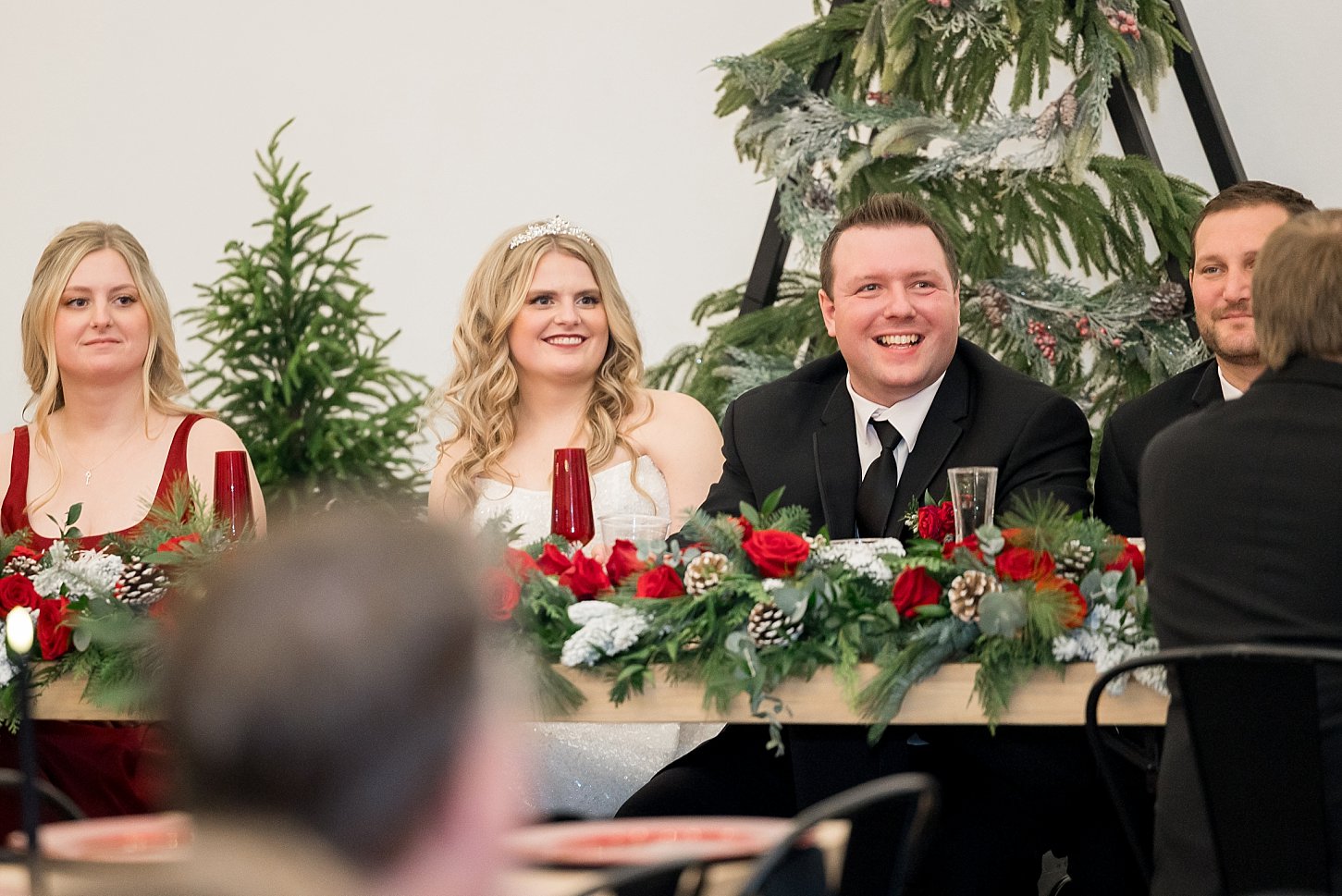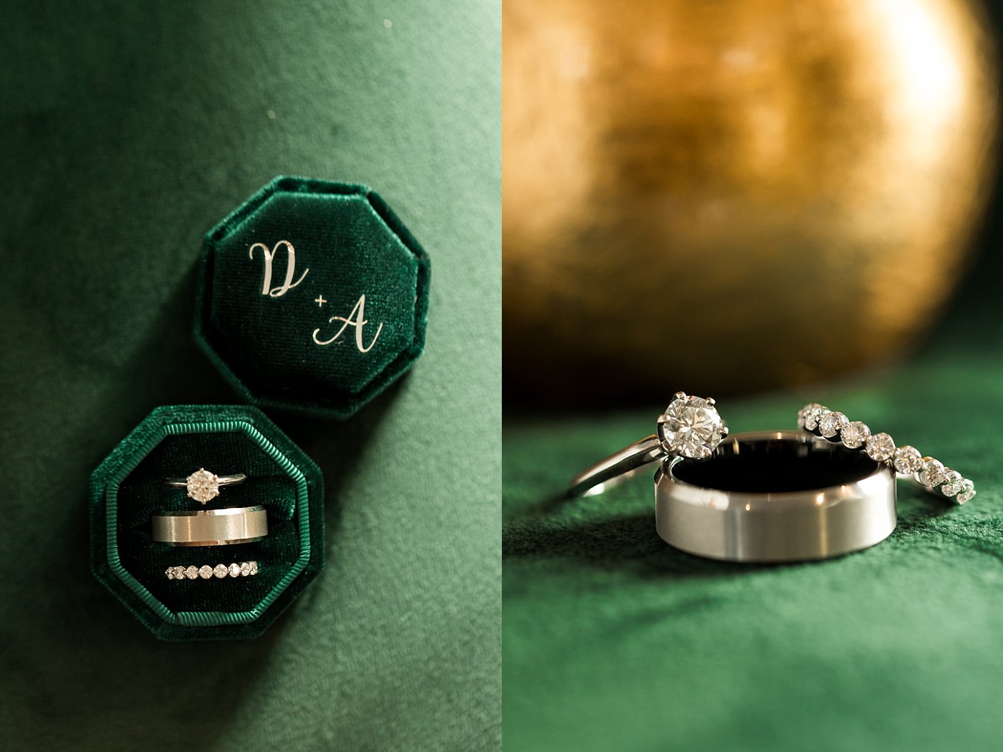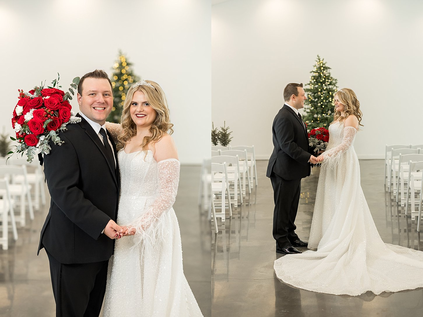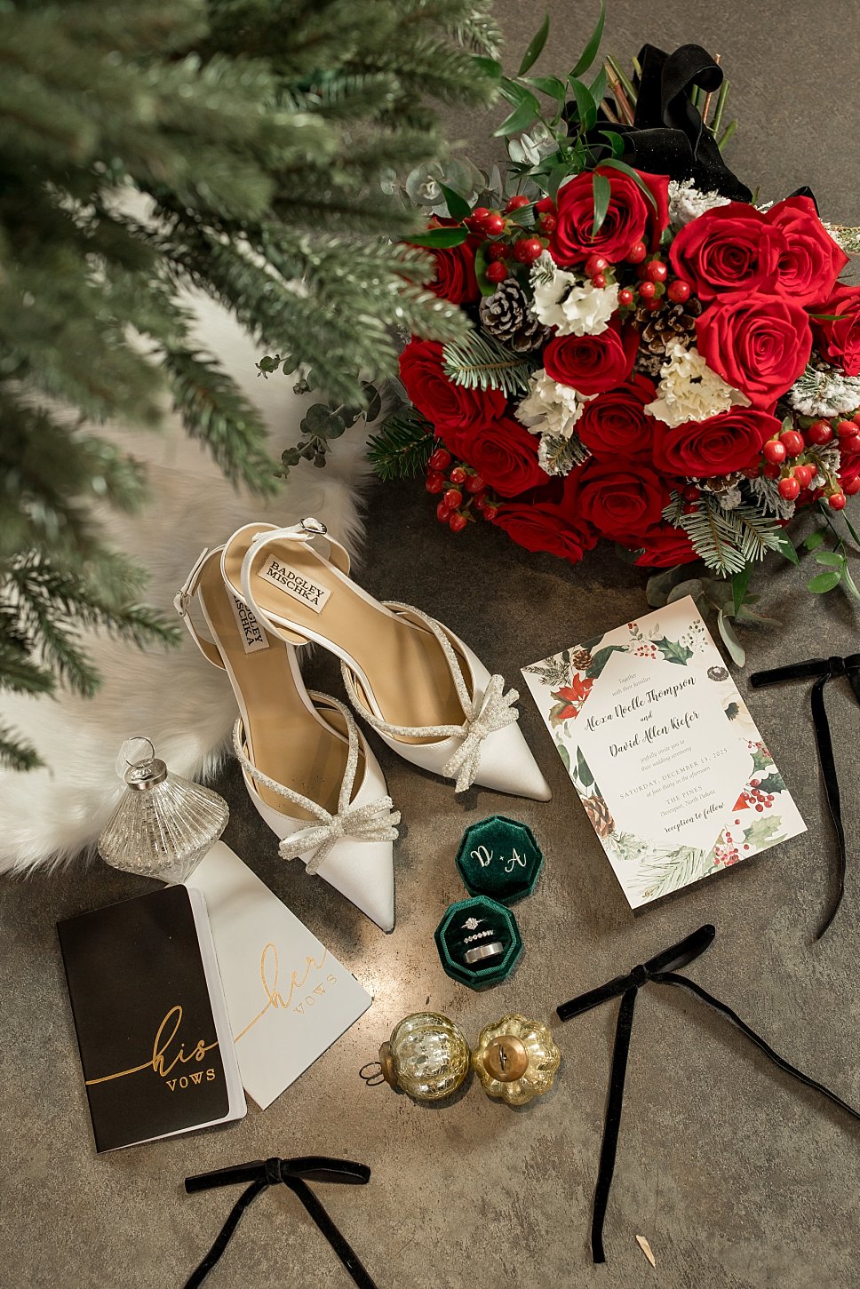 I have a Christmas wedding to share with you today! Alexa & David were married on Saturday at The Pines Black, and every part of the venue was decorated in festive tones of red, gold, emerald, and black velvet. Some of my favorite details were the Norwegian kransekake and a beautifully decorated Christmas tree at the front of their ceremony! After the sun had set, the couple shared a private first dance by the glowing lights of the tree. This was a wedding day full of holiday magic!