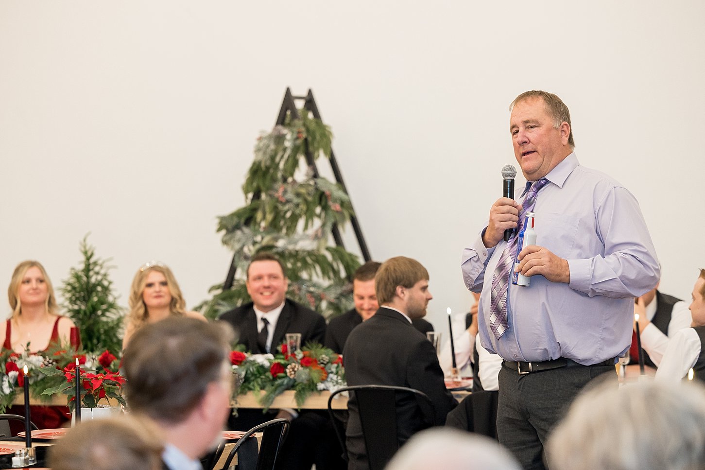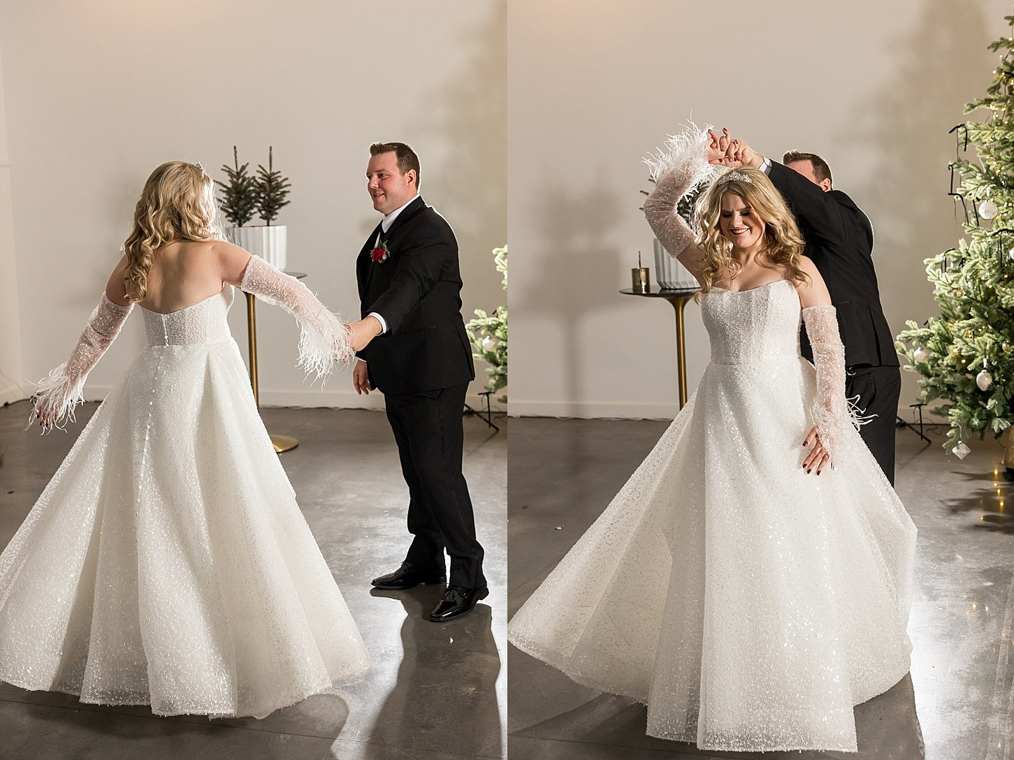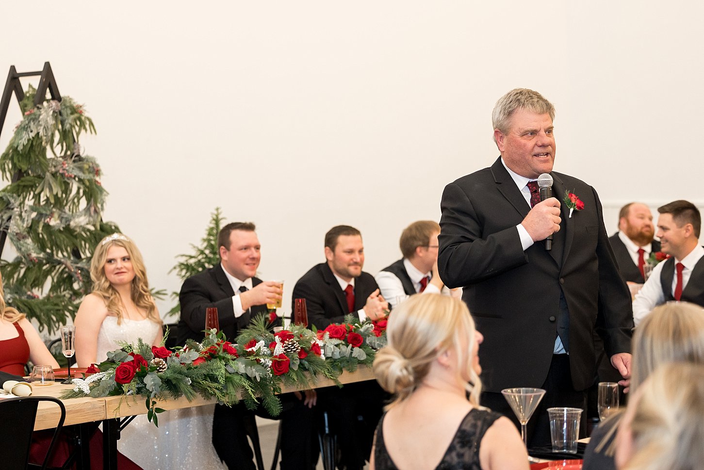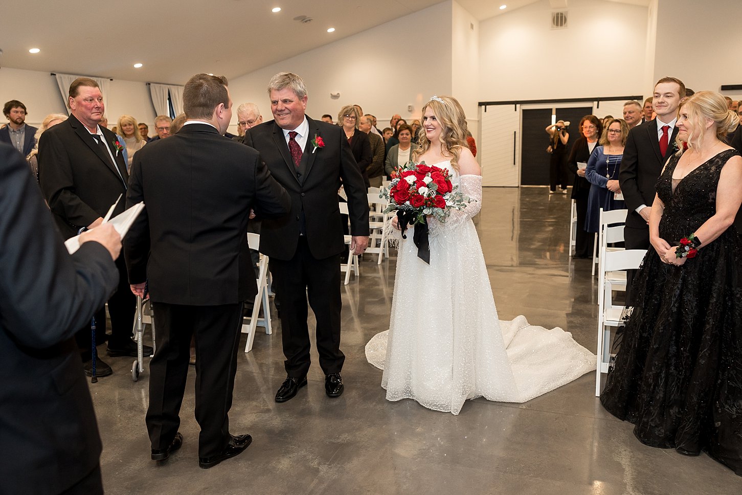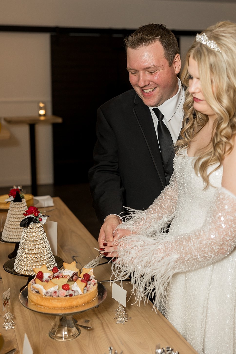I have a Christmas wedding to share with you today! Alexa & David were married on Saturday at The Pines Black, and every part of the venue was decorated in festive tones of red, gold, emerald, and black velvet. Some of my favorite details were the Norwegian kransekake and a beautifully decorated Christmas tree at the front of their ceremony! After the sun had set, the couple shared a private first dance by the glowing lights of the tree. This was a wedding day full of holiday magic!