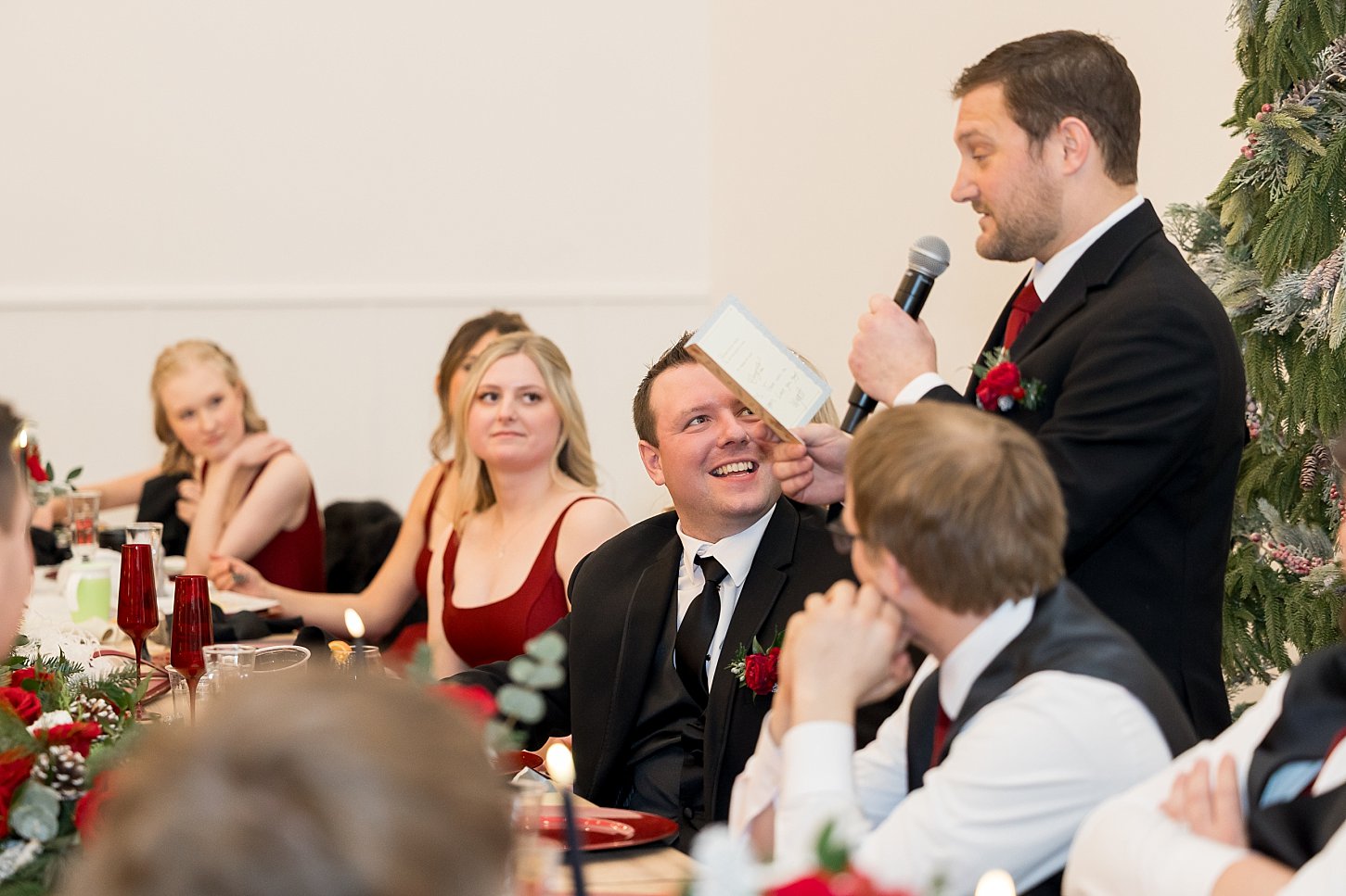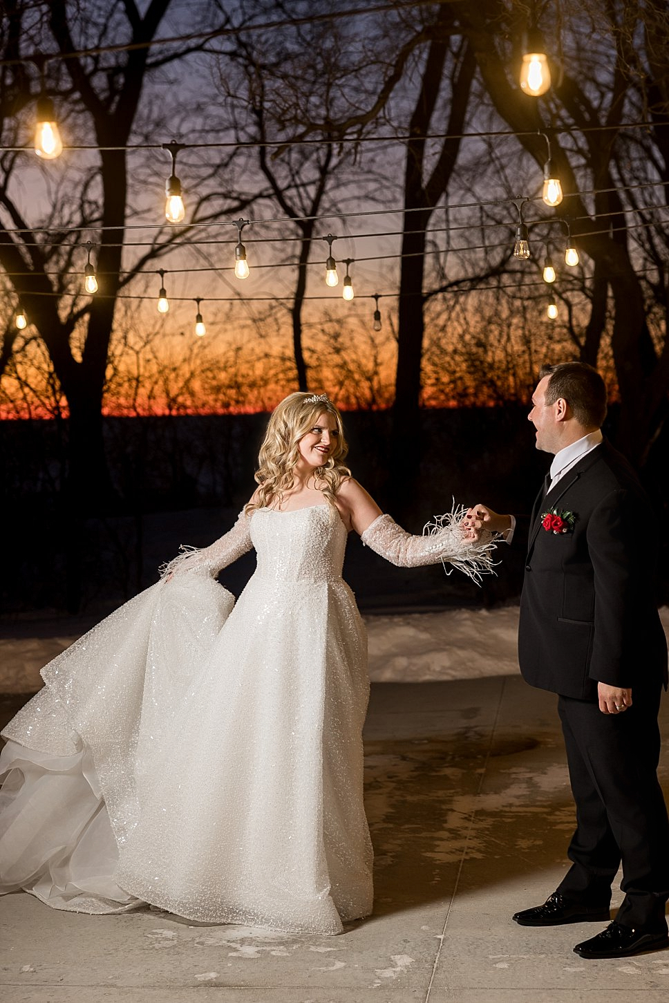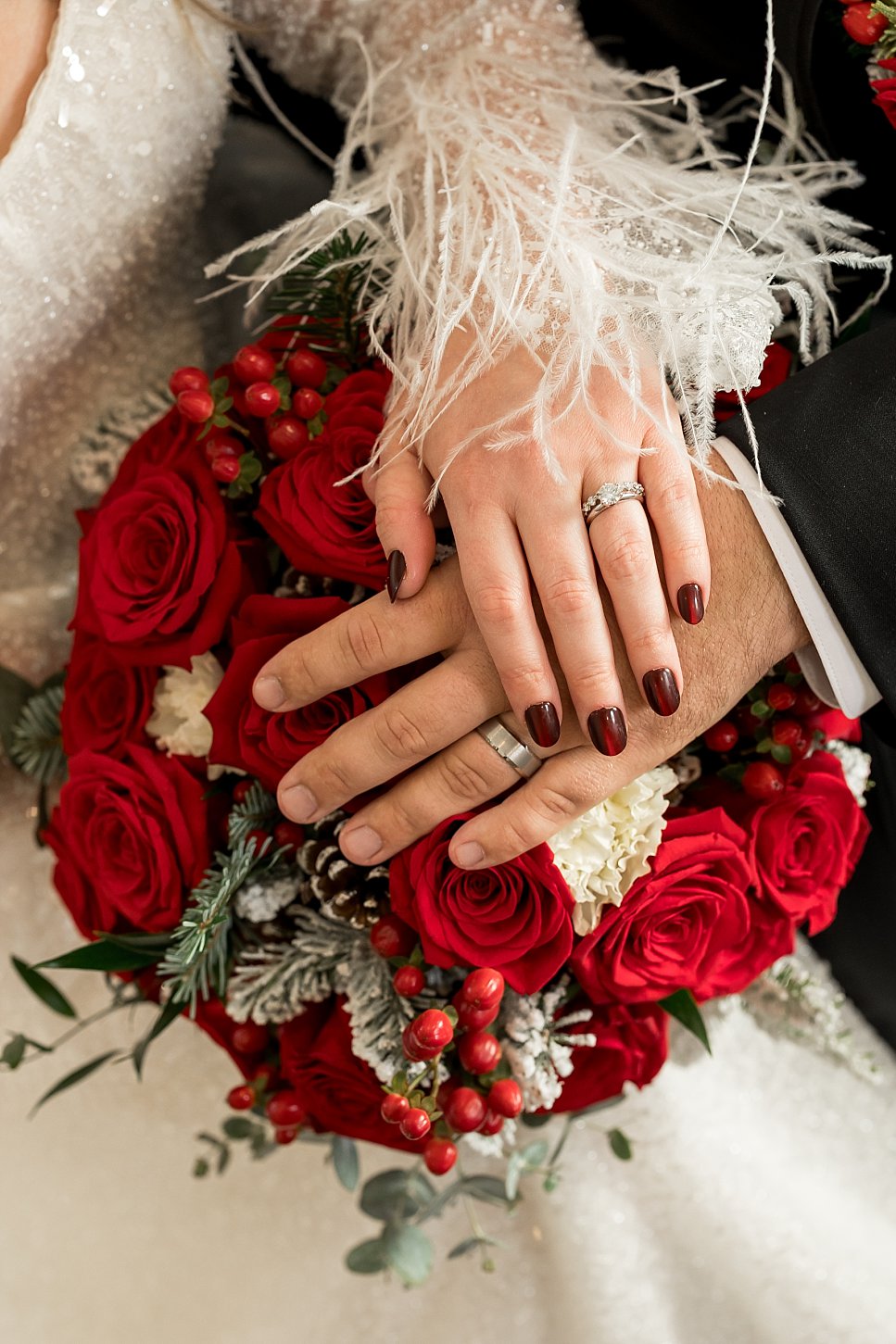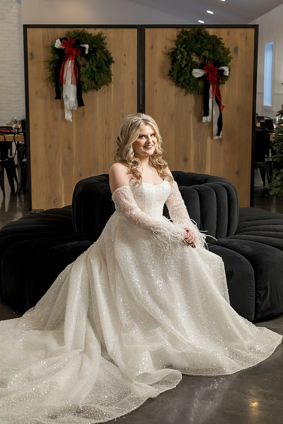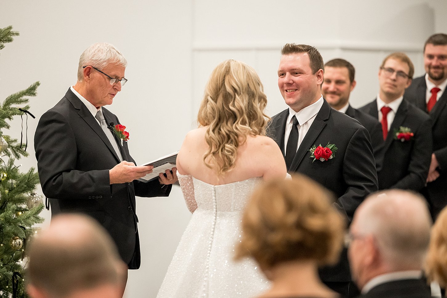 I have a Christmas wedding to share with you today! Alexa & David were married on Saturday at The Pines Black, and every part of the venue was decorated in festive tones of red, gold, emerald, and black velvet. Some of my favorite details were the Norwegian kransekake and a beautifully decorated Christmas tree at the front of their ceremony! After the sun had set, the couple shared a private first dance by the glowing lights of the tree. This was a wedding day full of holiday magic!