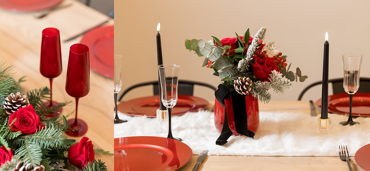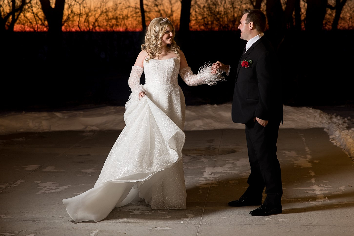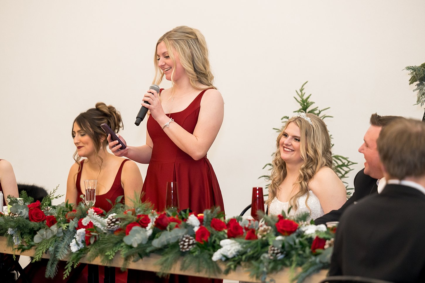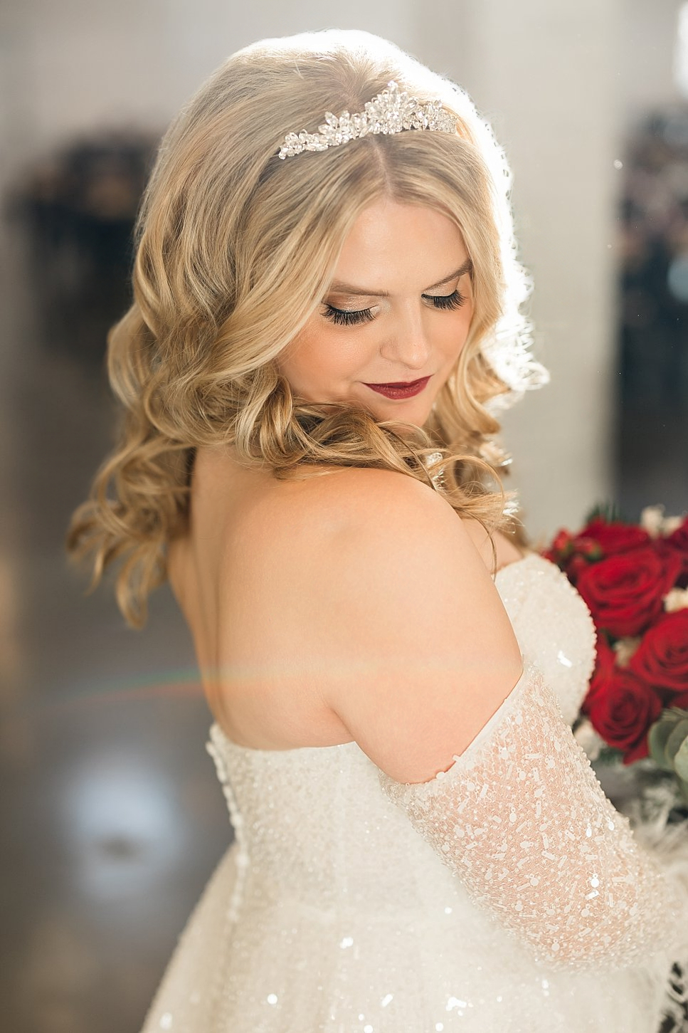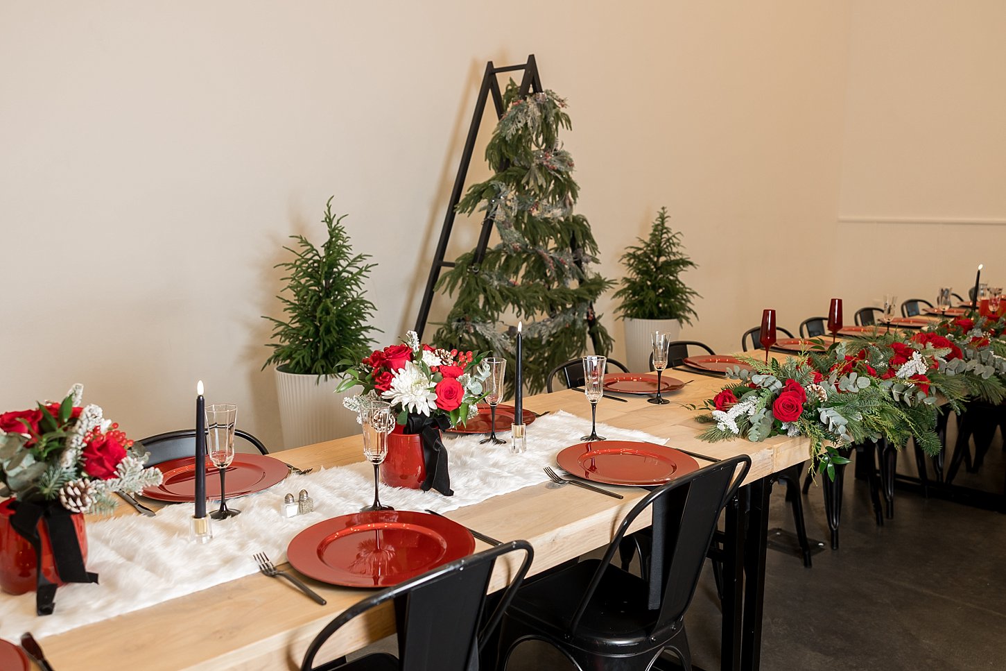 I have a Christmas wedding to share with you today! Alexa & David were married on Saturday at The Pines Black, and every part of the venue was decorated in festive tones of red, gold, emerald, and black velvet. Some of my favorite details were the Norwegian kransekake and a beautifully decorated Christmas tree at the front of their ceremony! After the sun had set, the couple shared a private first dance by the glowing lights of the tree. This was a wedding day full of holiday magic!